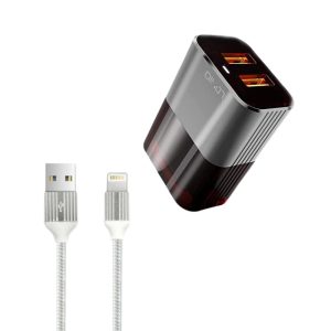 Cargador de casa LDNIO A2206 de 12W con cable USB-A a Lightning/Tipo-C, compacto, seguro y compatible con smartphones, tablets y más.