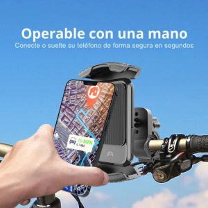 Ya sea para tus trayectos diarios o aventuras al aire libre, este soporte ofrece una solución práctica, duradera y segura para mantener tu teléfono siempre accesible y protegido.